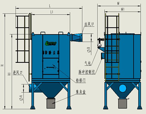濾筒除塵器一體機(jī)結(jié)構(gòu)設(shè)計(jì)緊湊、合理,采用風(fēng)機(jī)內(nèi)置式結(jié)構(gòu)。占地面積小,可放室內(nèi)或室外,為滿足現(xiàn)場不同工況要求開發(fā)出了成套的一系列的規(guī)格型號;