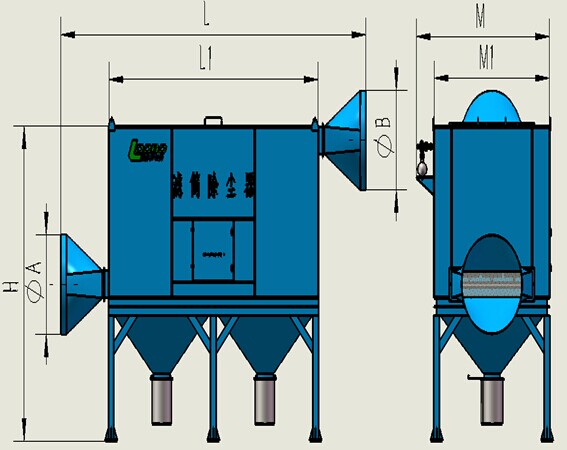 多濾筒除塵器為分體柜式機體,大風量高效除塵器,由于風機電機外形較大,不再適合與除塵器一體化設計,所以該系列除塵器采用分體設計。單獨的風機電機隔音箱體及消音器,使大風量風機噪音降到最低。由過濾柜、控制柜、脈沖反吹裝置等部分組成。內設高精度阻燃濾筒過濾單元,專用于整個車間多個焊接工位產生煙塵的收集凈化。在高效環保專用離心風機負壓吸入的作用下,切割煙塵通過風管收集進入過濾器,經預過濾分離及濾筒充分過濾,凈化后的空氣直接進入室內循環。