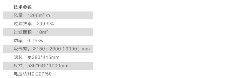 被污染的空氣通過(guò)吸氣罩和吸氣臂吸收到過(guò)濾裝置中,煙塵和顆粒物被濾芯過(guò)濾掉,清潔后的空氣從設(shè)備的底部返回到工作間。