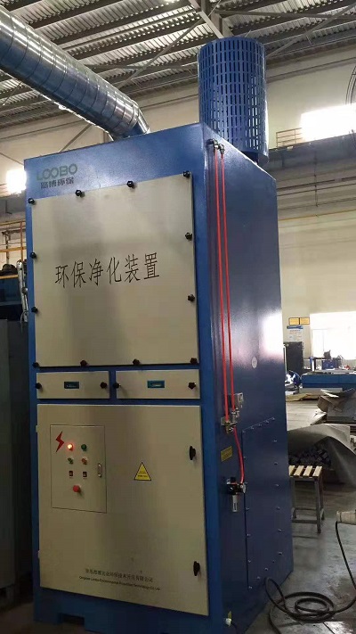 本設備適用用將機器人焊接工作間整體密封或者半密封,選用頂吸或者側吸的收集方式將機器人工作時產生的煙氣粉塵收集。單個工位機器人焊接房用小型濾筒除塵一體機進行單個收集凈化;多個工位需要進行整體是的收集,在通過拼裝式濾筒高凈化除塵器進行凈化的方式,采用集中式濾筒除塵器作為焊接機器人工作站內的主凈化系統。在風機作用下煙氣粉塵經管道進入到濾筒除塵器進行凈化,凈化后的潔凈空氣隨煙囪并達到環保合格排放。